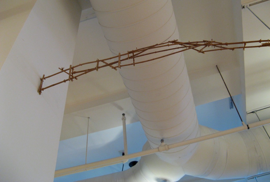 Fragile Environments 2007 MFA Thesis Exhibition “Fragile Environments” at the College of Visual and Performing Arts, University of Massachusetts at Dartmouth in New Bedford, Massachusetts Tower: stacked leaves approximately 6′ tall, made of porcelain slip, a porcelain egg and carved twigs Between Two Of Us: porcelain, carved twigs and felted wool Drip Bird: polluted water, porcelain pipes, floor and bird Bridge: 16′ span of twig structure and porcelain snail Shards: 11′ x 9′ area of porcelain shards dotted with porcelain birds www.dawnstetzelthesis.blogspot.com Post navigation Just Barely