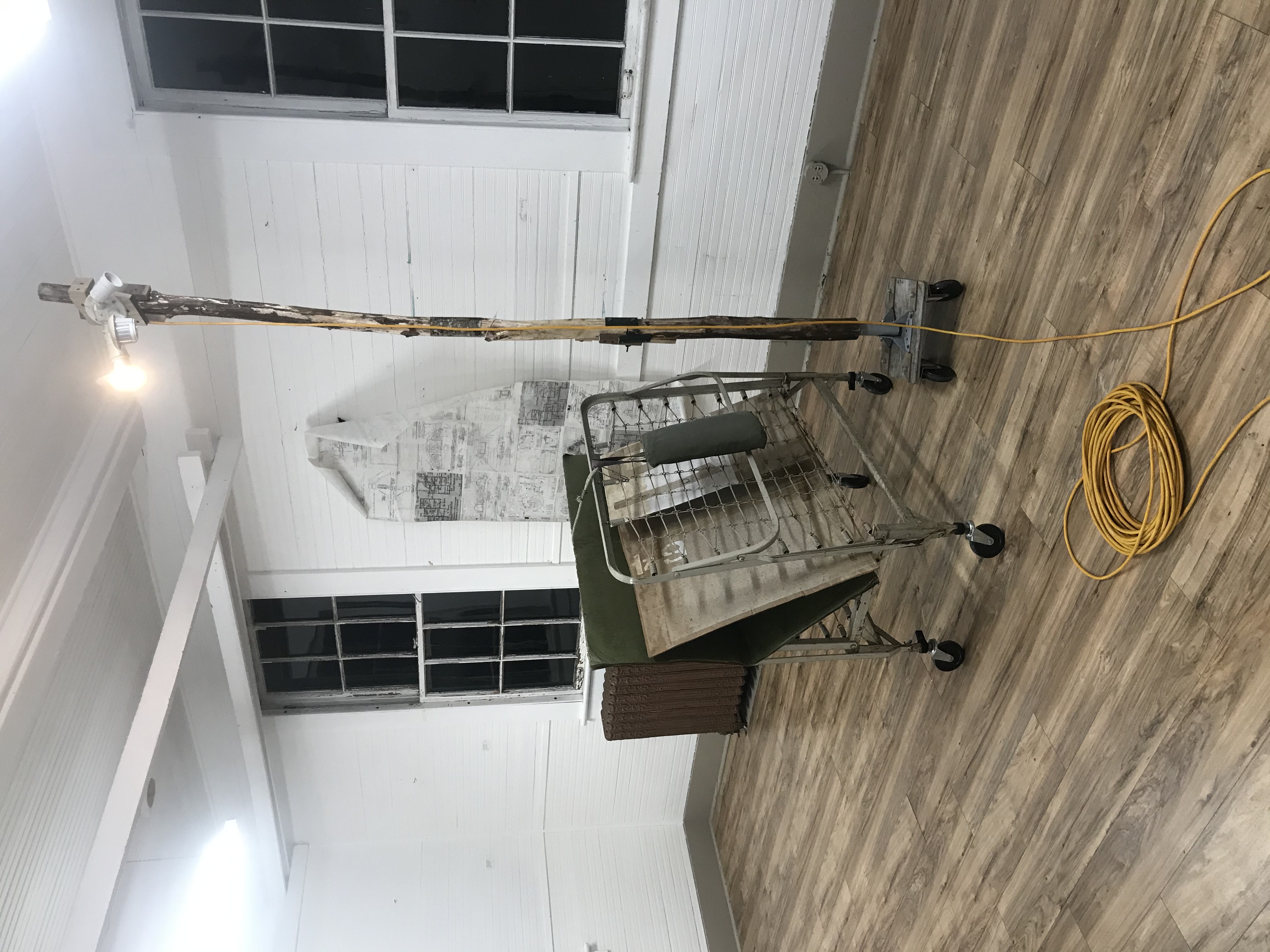 Tether Unit sheet photo credit Atelier Pictures Title: Tether Unit (work in progress)Time/Place: 2020 while Artist In Residence at The Centrum Foundation in Port Townsend, Washington USA for the month of October, 2020Size: varies Materials: discarded metal fold up “wheel away” bed frame, wheels, handmade cardboard mat, box spring fabric sheet printed with turn of century coast artillery fort building plans, wood, re-wired security motion lights, electrical cord, portable head pillow Details (condensed): Tether Unit is a mobile performative sculpture, a tool on the move in which to seek moments of survival, opportunistic existence within a dysfunctional system. Post navigation LiferaftTether Unit