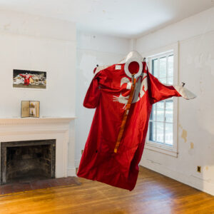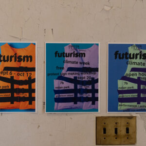 Futurism Fire or Flood Jacket and Survival Suit Futurism exhibition at CLIMATE WEEK NYC FOREST FOR TREES COLLECTIVE, 7B Nolan Park Governors Island, New York City, NY 10004 September 6 – October 12, 2025 In an age marked by ecological uncertainty, Futurism is both a proposition and a provocation: What futures can we imagine when we root our visions in justice—for land, for more-than-human life, and for one another? Futurism unfolds across temporal thresholds—utopia, near-future realities, and post-collapse improvisations. The works in this exhibition span imagined ecotopias and hybrid landscapes, where technology merges with ancestral knowledge, and resilience is cultivated not as a buzzword but as a relational ethic. Drawing from traditions of Afrofuturism, Indigenous futurity, eco-surrealism, and survivalist poetics, the artists conjure futures that are messy, mutant, and alive with possibility. Rather than retreating from ecological grief, Futurism makes space to metabolize it—transforming despair into compost for action and dreaming. Here, the speculative is not escapist. Futurism asks: How do we live after the end of the world as we know it? And what if the answer is already growing in the cracks? Arists: Ana Anu, Andrea Coronil, Kaden Bard Dawson, Ramon Parish, Emily Reyes, Yali Romagoza, Dawn Stetzel Post navigation FuturismHouse