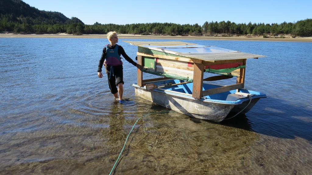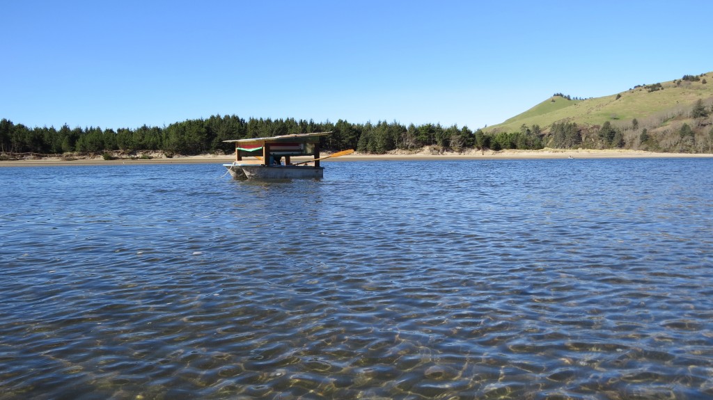 Houseboat (photos on the Salmon River near the mouth at the southern base of Cascade Head on the central Oregon coast) Title: HouseboatThe title of this work is Houseboat. Rest Assured is the name of the boat.Place/Time: on the Salmon River on the central Oregon coast in 2015 Size: 10′ long x 4.5′ wide x 5′ tallMaterials: gifted rowboat, beachfound rope and tarp, salvaged: wood, wheels, plexi, corrugated fiberglass panels, roofing rubber, grill cover tarp (all materials selected for their specific and inherent story of place relevant to the concepts within this work) Details:Houseboat speaks about notions of home and perceptions of safety. I use Houseboat to explore what it is like to live in a place of tides and tsunamis where land is not always land, sometimes it is water. Within Houseboat I reflect on the wide range of public conception regarding safety. I also poke at the possible wariness of lifestyles deemed as seemingly not appropriate ways of living in a place. The method in which I constructed Houseboat reflects my wish for adaptability and resourcefulness. I want to live in a way of safety yet acknowledge that home is not always a place of security, that at times by embracing fear and taking risks I find meaningful ways to live in a place. As an artist spending time in this place I acknowledge and pay respect toward those who today are represented by the Confederated Tribes of the Siletz Indians and the Confederated Tribes of the Grand Ronde, and whose stewardship of Cascade Head and the Oregon coast continues today. Post navigation HouseboatHouseboat